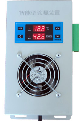 TE-CS02智能型除濕裝置是采用半導體制冷除濕方式, 主動將密閉空間的潮濕空氣在風扇的作用下吸入除濕風道, 空氣中的水汽經過半導體制冷機構后冷凝成水, 再通過導水管排出柜體, 可以達到很好的除濕效果。 通過減低空氣中含水量, 使相對濕度和絕對濕度同時下降, 幾乎不提高溫度, 不產生溫差帶來的負面影響, 從根本上杜絕或減少了事故的發(fā)生, 也不會因高溫而加速柜內器件及柜體的老化。 智能型除濕裝置把被動防止凝露方式,改為主動引導凝露,有效的防止柜內設備老化、 絕緣強度降低、 二次端子擊穿、 材料霉變及鋼結構件銹蝕等安全隱患,保證電網(wǎng)安全運行。