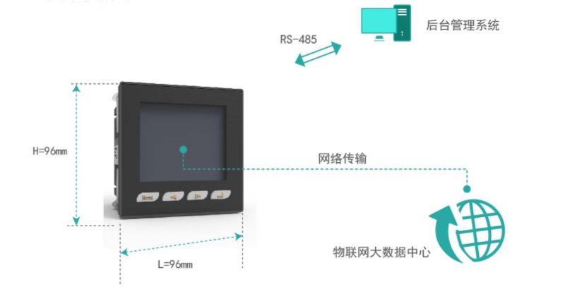 ● 測量功能:三相電流、三相電壓、功率、功率因數(shù)、頻率,總有功電能、總無功電能,32次諧波分析、復費率統(tǒng)計,零序電流,無線測溫。