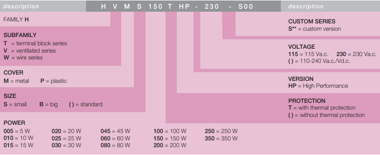 Model numbering system for H SERIES