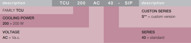 Model numbering system for AC THERMOELECTRIC UNITS