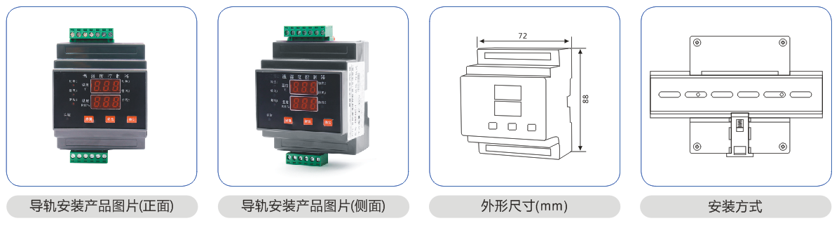智能型溫濕度控制器采用數(shù)字溫濕度傳感器,以數(shù)碼管LED方式顯示溫度、溫度值,帶有風(fēng)扇、加熱器接點(diǎn),并有加熱器斷線報(bào)警、傳感器故障指示等功能。產(chǎn)品還可帶有RS485通訊接口或報(bào)警開關(guān)量輸出,用于實(shí)現(xiàn)環(huán)境溫、濕度值及工作狀態(tài)參數(shù)向上位機(jī)遠(yuǎn)傳,適合無(wú)人值守變電所要求。用戶可通過按鍵編程任意設(shè)定溫度、濕度的上下限,循環(huán)顯示方式,通訊參數(shù)等。
