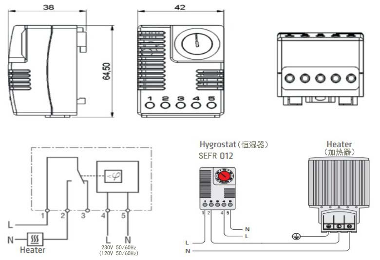 electronic hygrostat電子濕度控制器感應(yīng)到在一個(gè)封閉空間內(nèi)的相對(duì)濕度,控制加熱器和風(fēng)扇防止冷凝形成