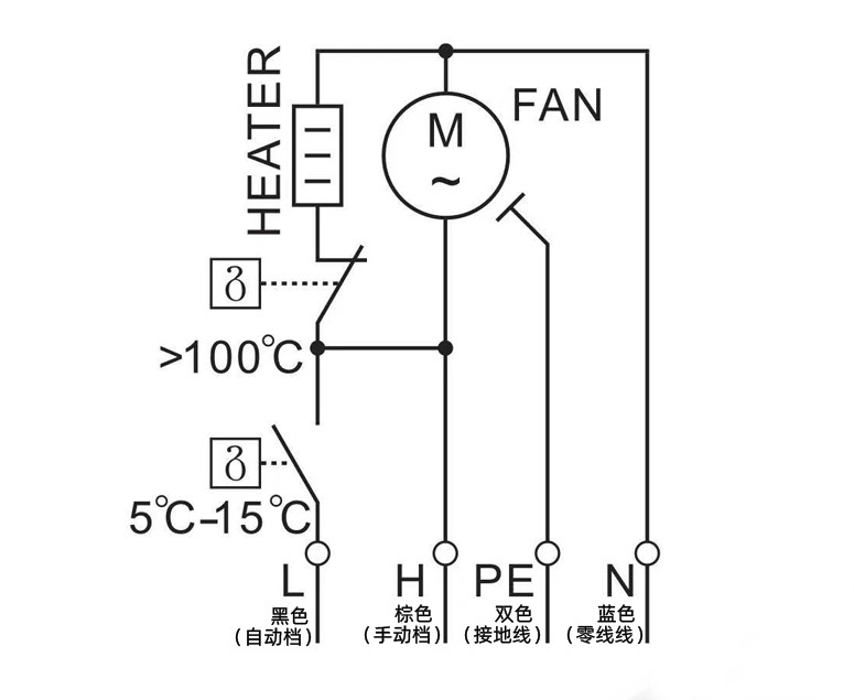 防止風(fēng)扇堵轉(zhuǎn)過熱保護(hù)開關(guān),自動復(fù)位,100~120℃