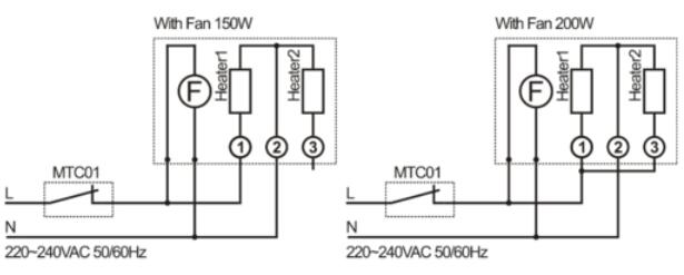 3.加熱器應(yīng)垂直安裝, 熱風(fēng)向上,禁止覆蓋!